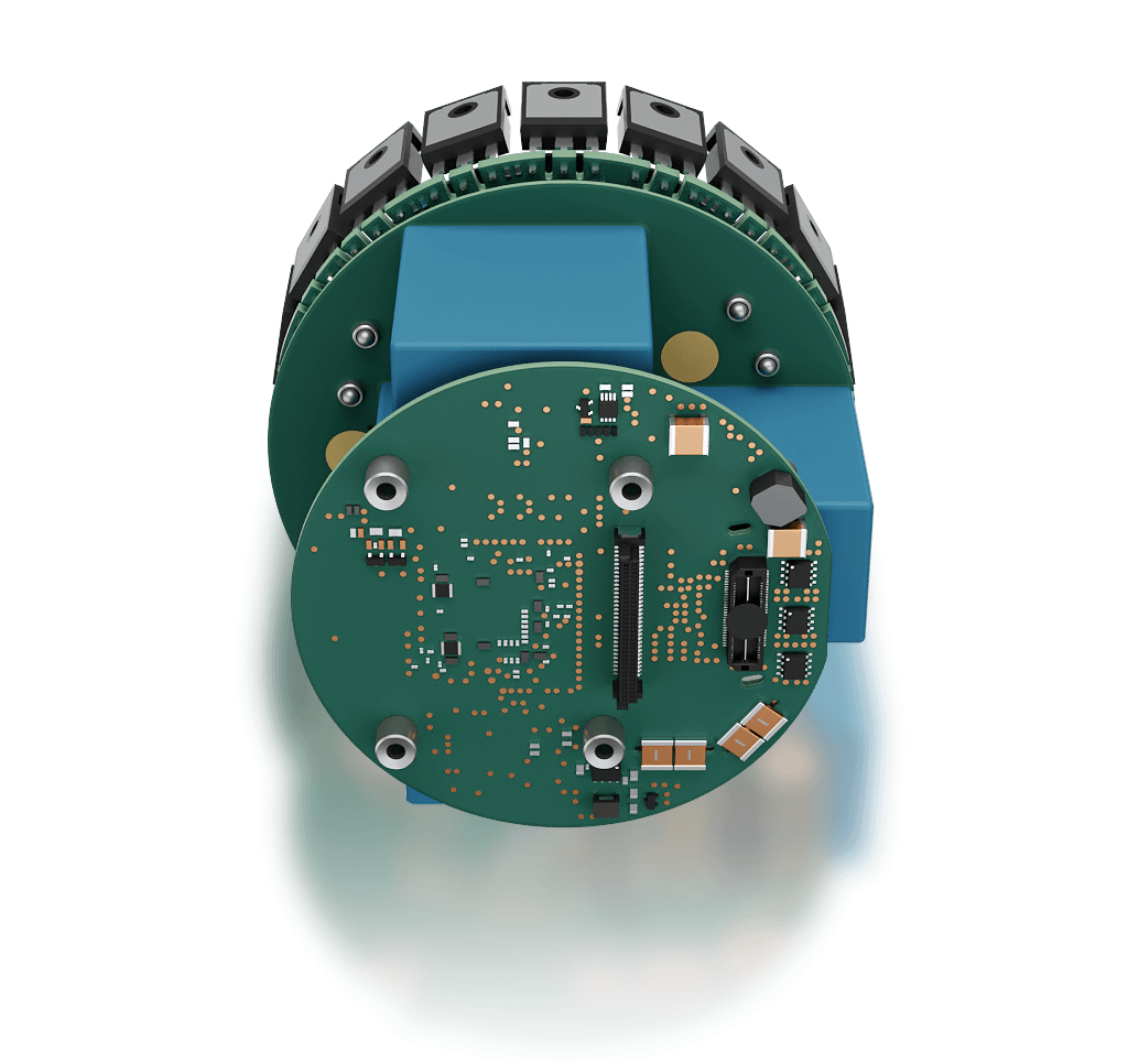 Whether as an integrated part of a complete system or as a standalone component, the air-cooled power inverter controls your electric motor with high dynamics, precision, and reliability – even in demanding continuous operation.